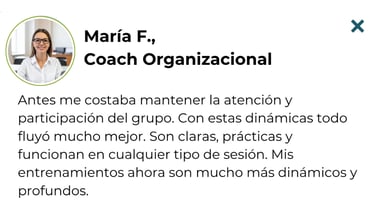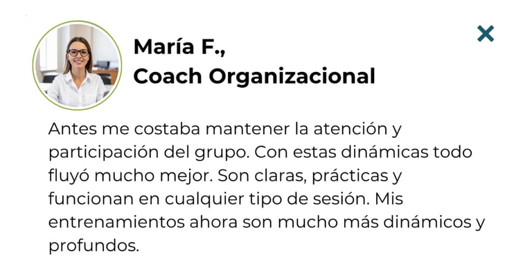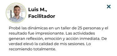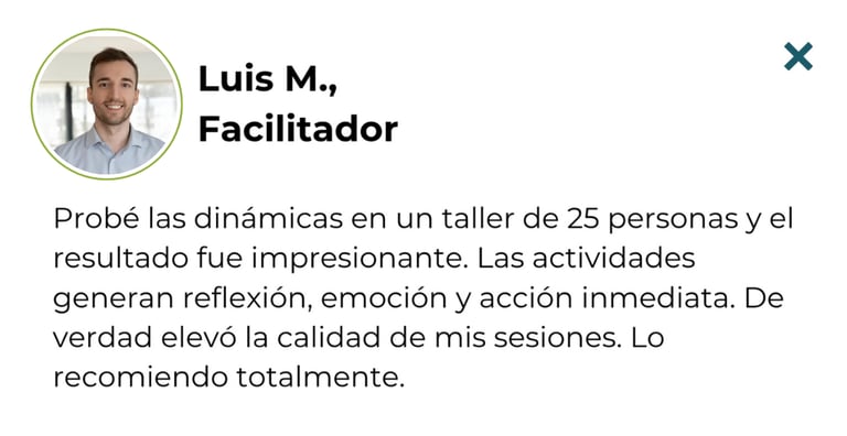 Recibirás actividades diseñadas para crear conexión genuina entre los participantes, facilitar un ambiente de confianza y generar apertura desde los primeros minutos de la sesión.